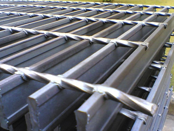 鋼格板吊頂的固定有焊接和安裝兩種方法。可采用焊接,將其焊在支承物上.具體位置,在板的每個角第一根扁鋼上,焊接長不小于20毫米, 高不小于3毫米的角焊.采用安裝夾具有不破壞鋅層和拆卸方便的優點,可使用安裝夾固定,每塊板至少應采用四個安裝夾,對大的板塊好在可利用的支承物上多安裝幾個。