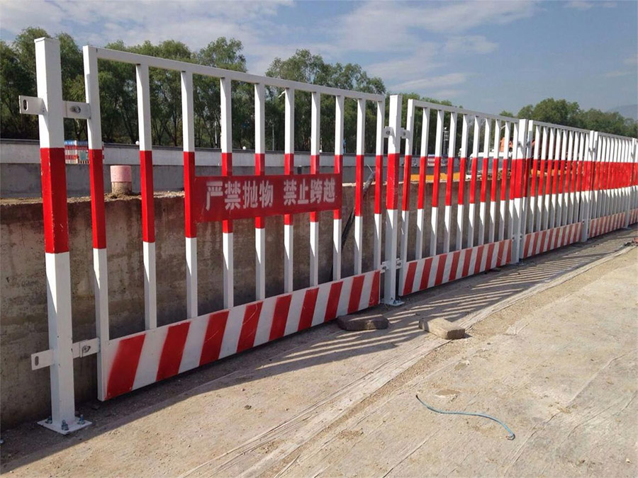 網片設計為黃色、立柱為紅色,均為噴繪,以達到紅白相間的警示效果。網片網格為50*50mm,鋼絲直徑為3.5mm。